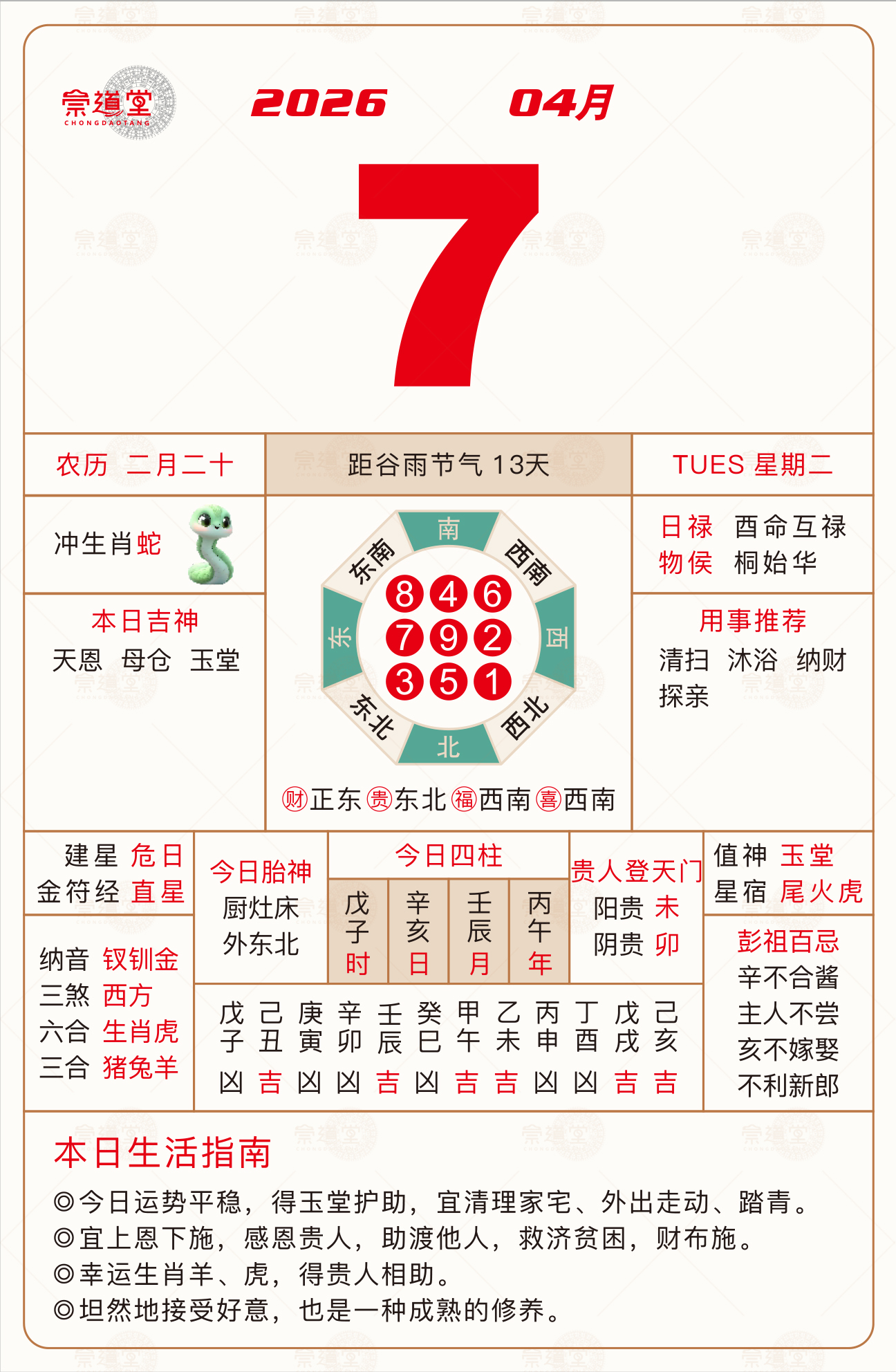 2026年4月13日 农历二月廿六 丁巳日 冲猪