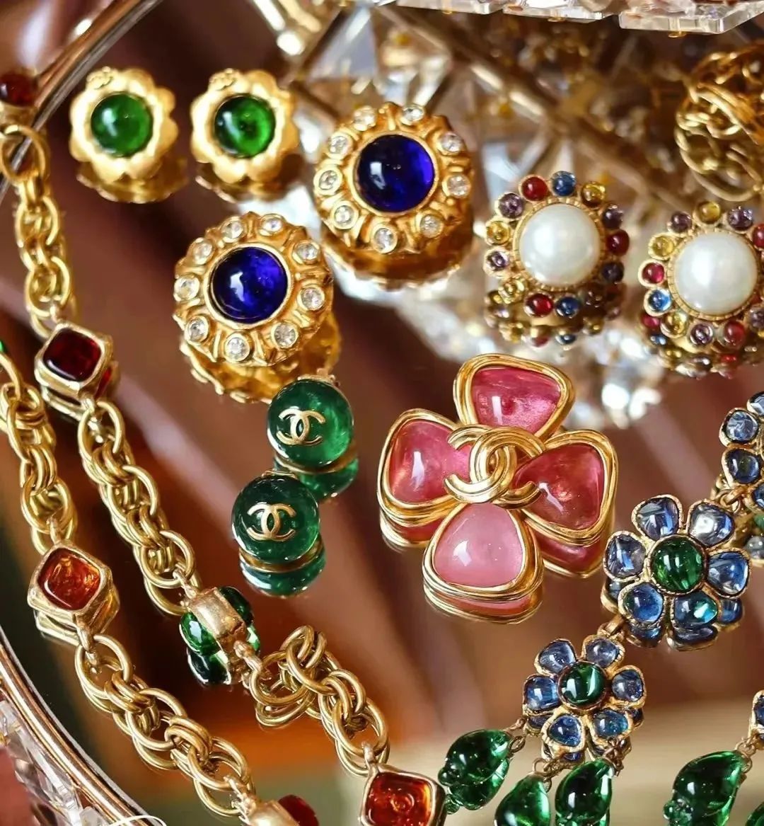 我也自留了好几个颜色,基本上就半焊在我脖子上了,完全不挑穿搭。就是照片中这个香奈儿的中古款,第一眼就被它的绚丽色彩吸引,直勾勾挪不开眼,一旁的珍珠都黯淡了。跟玻璃同原料,但整个过程只依赖手工完成,吹制、拉丝、混色...火里来、水里去,这种骤然温差对每个老师傅的生命都是潜在威胁,可对琉璃,却如锻造真金,越危险越美丽。如凤凰浴火,完美的琉璃是真正的珠宝,剔透无暇,博物馆都抢购收藏。她称琉璃为“Costume Jewellery(时装珠宝)”,品牌高定珠宝大多都是琉璃,风格设计流传至今。如今很多国际奢侈品牌的高定系列、秀场新款也爱用琉璃。▲Loulou de la Falaise(YSL御用设计师的品牌)而我青睐琉璃的原因,更实际一点