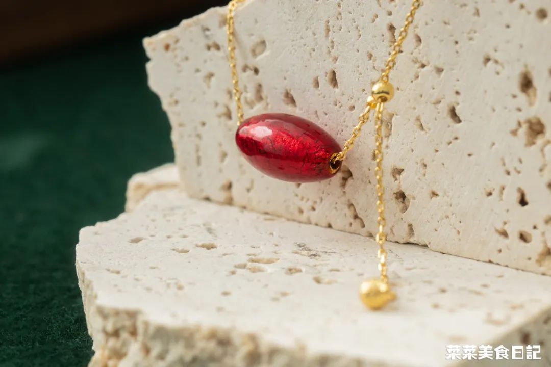 单色琉璃未免单调,而糖心琉璃贴金箔后,外层剔透无暇如玉石,内层斑斓变幻如晶石。不同光线下,看到它变幻出不同的光芒,简直是太阳的宠儿,彩虹的化身。喜欢到时不时低头欣赏自己的项链,真美!眼光真好!