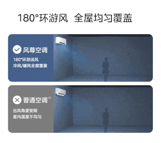 ✅而美的的这款是3D环游风,全方位的环绕送风,可以兼顾到屋里上下左右各个角落,就仿佛给送风孔装了个万向轮,指哪打哪,这样整个房间空气循环加快,不同角落的温差变小,整体房间温度也能更快均匀地降下来。