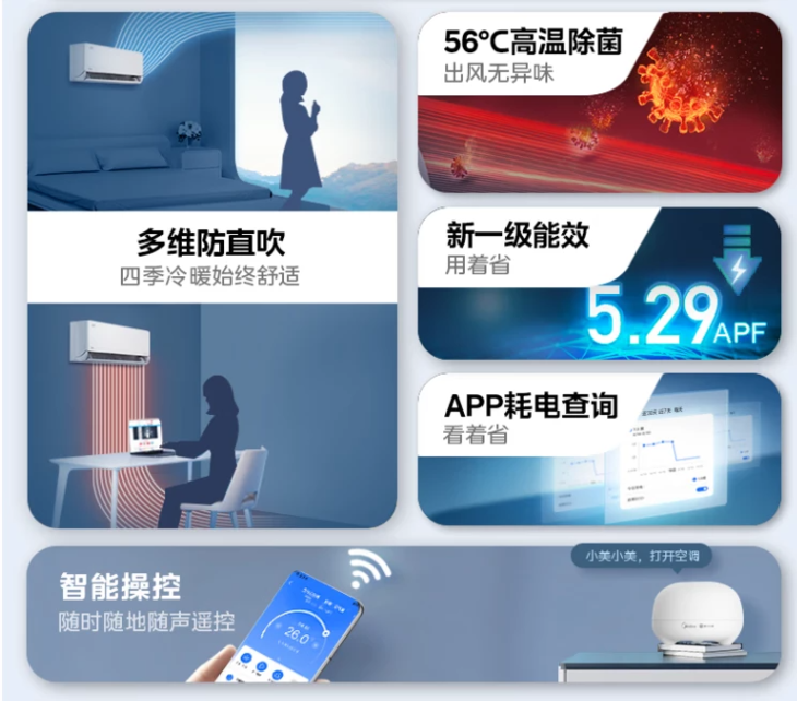有些风域小的空调,温度调节比较慢,夏天冬天到家,得等好久才能感受到想要的降温和取暖效果。而美的风尊就不会有这种情况了。