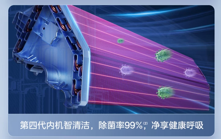 那就是让空调自己解决,第四代智清洁+56度高温抑菌,洗净灰尘污垢的同时灭除危害人体健康的细菌。而且它的外壳挡风板是一体设计,还可以整个拆下进行清洗,保证由内到外的清洁干净。 很多传统空调的挡风板清洗很是麻烦,要人踩着凳子垫着脚,而且一直保持抬头伸手姿势,洗完脖子发酸手也酸。这样不仅又危险又累人,角落缝隙也容易清洗不干净。但美的就没这个问题,YYDS。