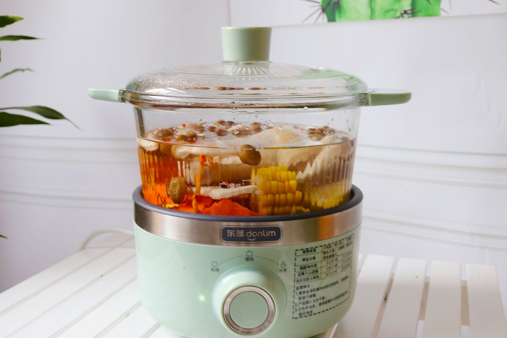 将所有食材放入东菱养生锅里,加入足量的水,开启慢炖功能,东菱养生锅,“快煮/慢