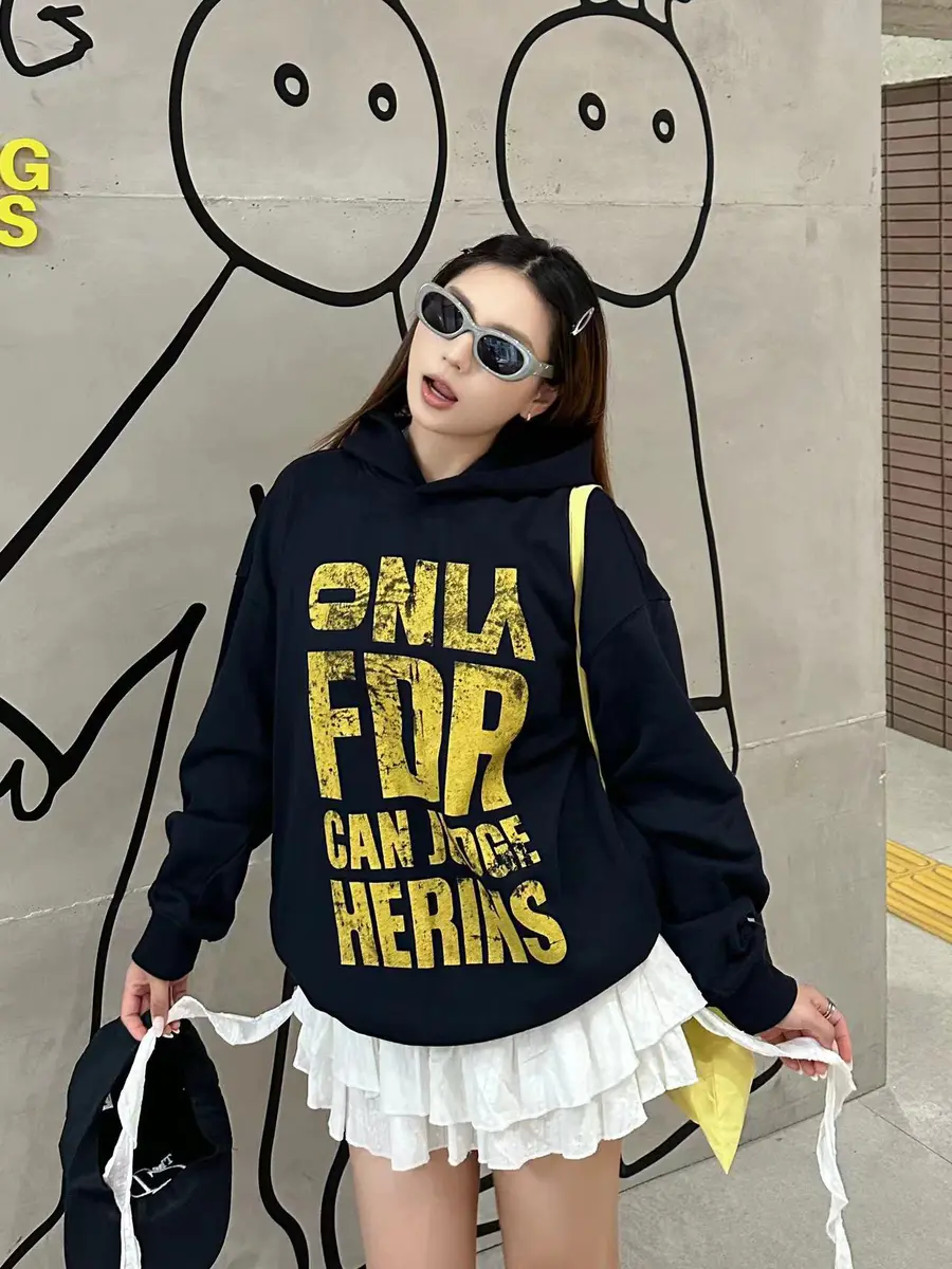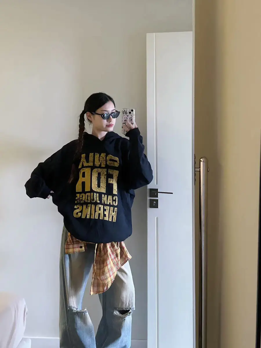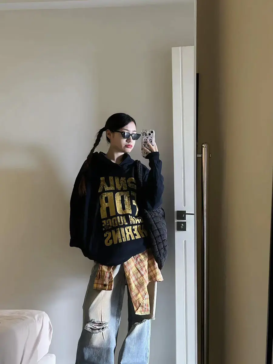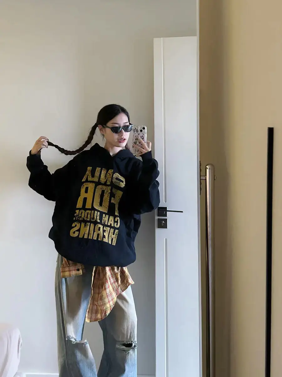 LOOK4. 美式复古卫衣+破洞牛仔裤