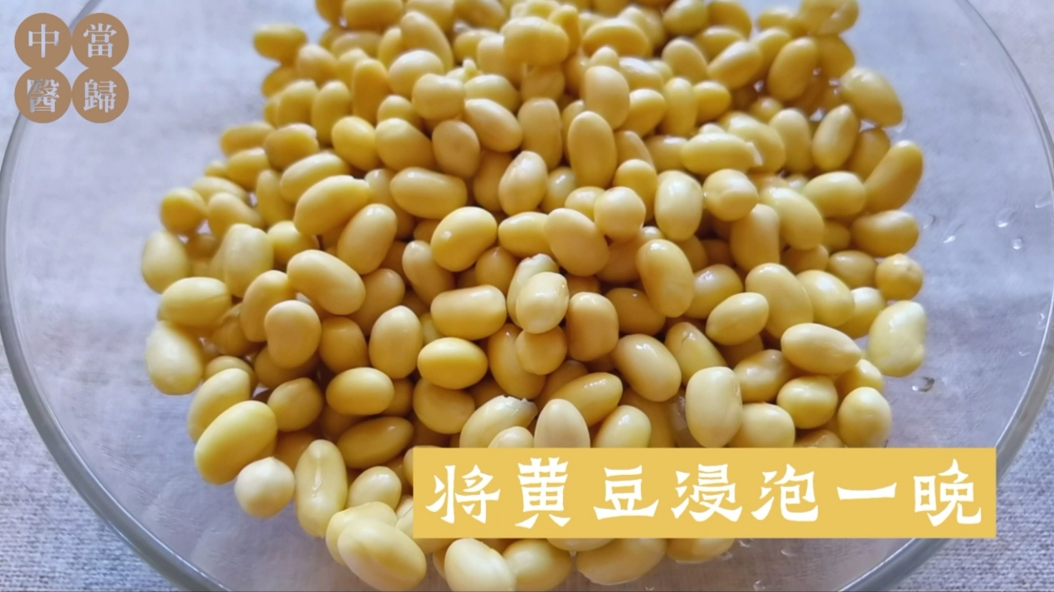 首先把黄豆浸泡一晚,