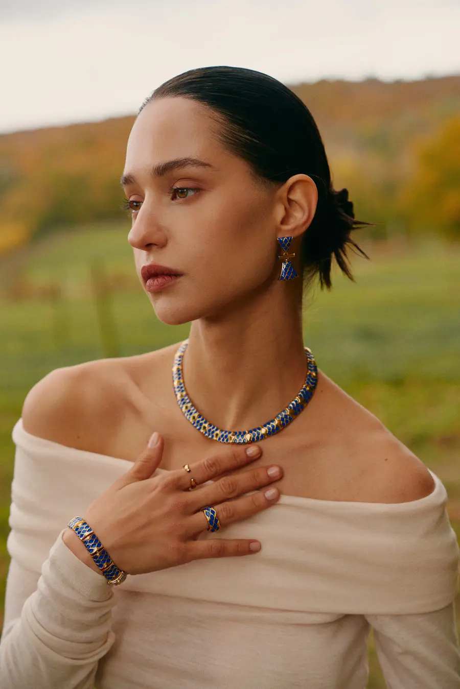 苏美圣蛇系列的灵感源自苏美尔文明中象征智慧与守护的“神圣之蛇”。