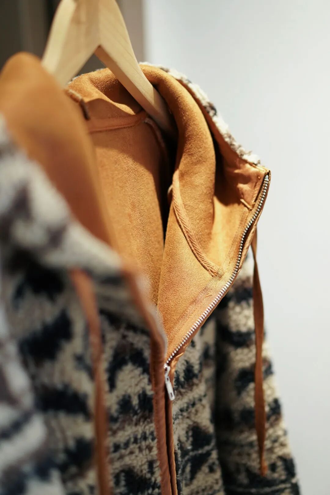 ✅内里的暖棕仿麂皮是二层暖意,贴肤时像被篝火旁的毛毯裹住。