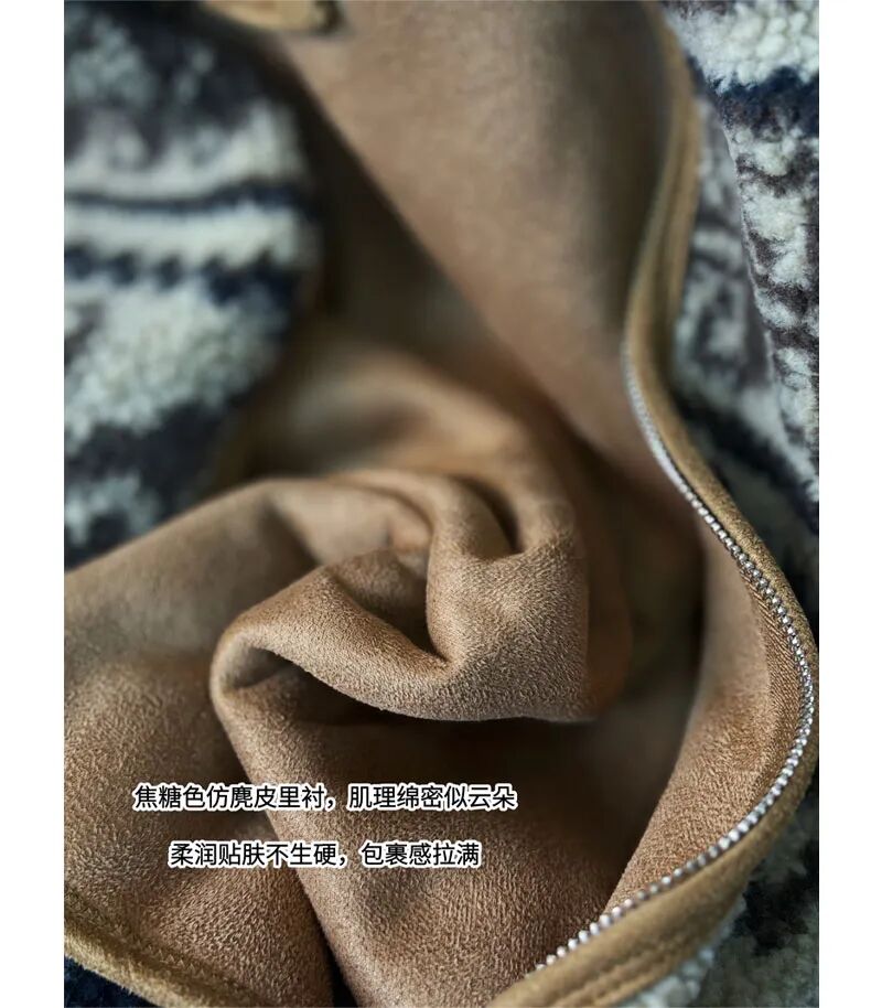 这款费尔岛提花仿羊羔毛连帽外套,以北欧冬日的雪境纹样为灵感,将圣诞的浪漫与冬日的温暖揉进衣料里,成为你节日穿搭的心选。