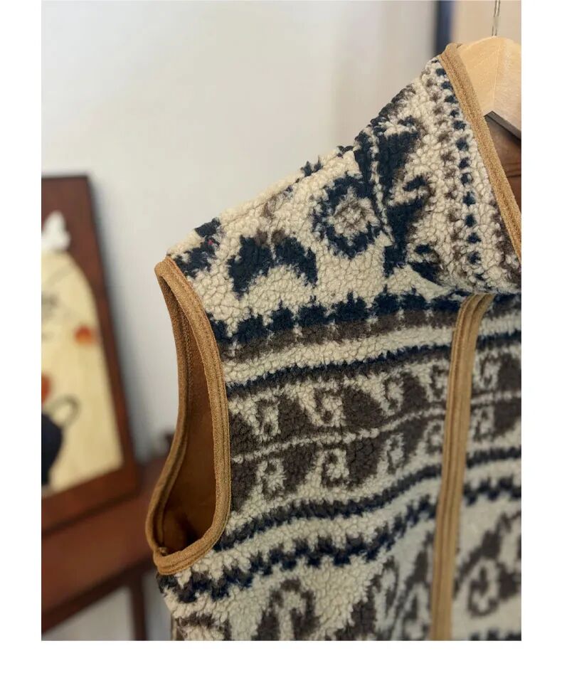 氛围感拉满,冬日就穿它——游牧风仿羊羔毛毛绒马甲。