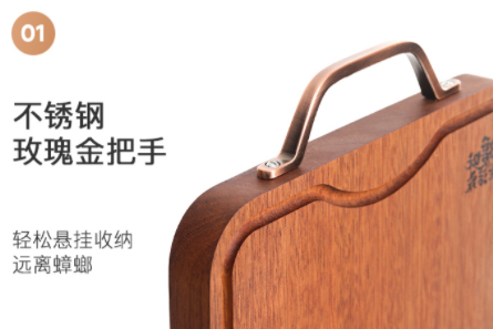 因为是方形设计,菜板还可以挂起来放置,沥水阴干更方便,也不占位置。只要保持干净干燥,加上花梨木抗菌性,就不用担心发霉啦~