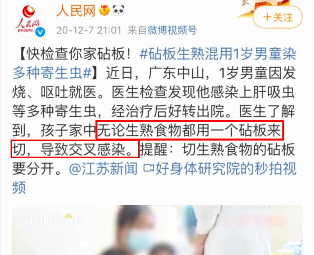 真实案例!因长期一个砧板生熟混切,1岁男童被检查出感染上肝吸虫等多种寄生活虫▼