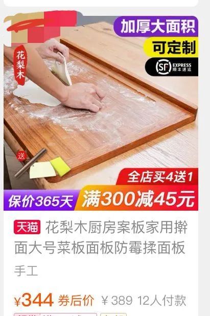 随手在某宝上一搜,普通花梨木的菜板价格不菲,均在200~350元左右,更别说进口的了。