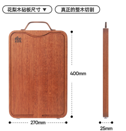 今天这个【暖暖&大厨定制款菜板】,只选用进口50年以上树龄的花梨木,整木切割打造!