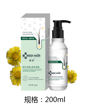 第二款和丝屑清搭配的产品是款冬去屑止痒洗发露,它适用于头屑头痒的情况,款冬去屑止痒洗发露含有款冬叶提取物、青蒿提取物、苦参提取物、牛油果树果脂、吡硫鎓锌和水杨酸,可以杀菌抗炎,缓解瘙痒,还可以补充头皮角质层脂质、加固头皮屏障,防止水分丢失。