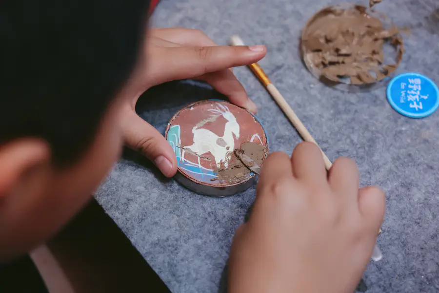 在研究院老师的带领下,大朋友和小朋友们一起,可以学习莫高窟各种不同壁画病害成因及修复方法,使用特制的工具,亲手修复一块破损的壁画标本。修复好的壁画标本,大家可以带回家去收藏。这是旅途中一份难得的亲子共创的美好时光。