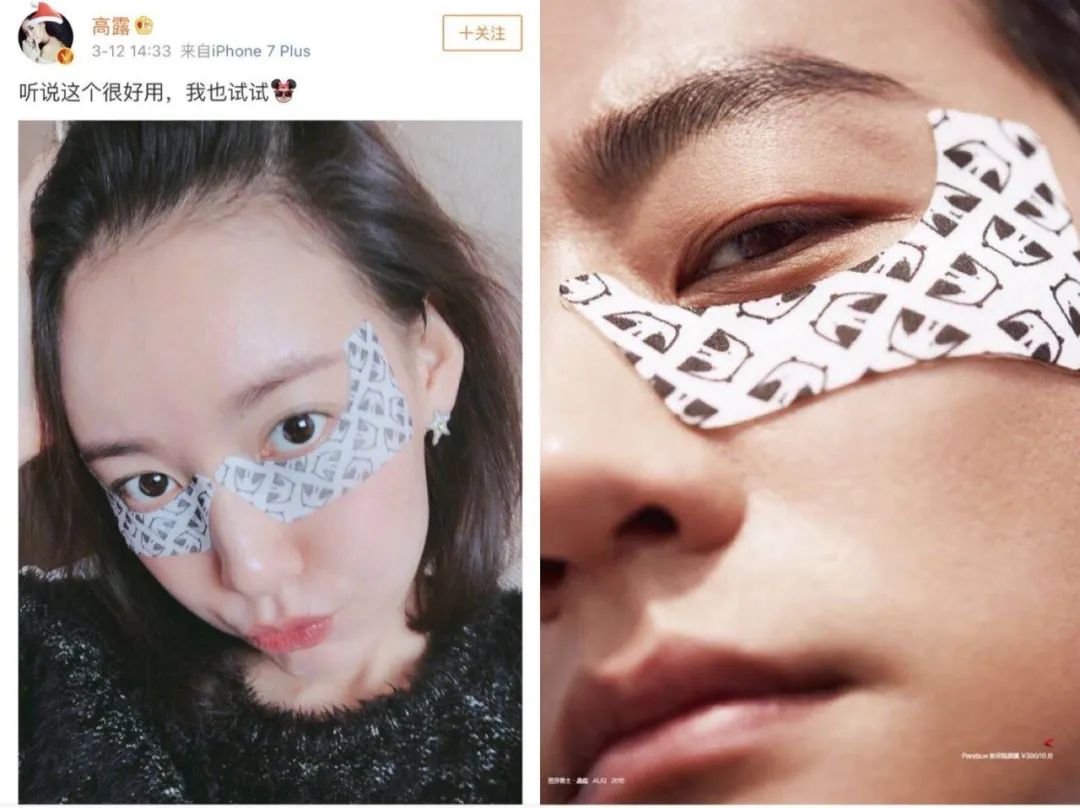 而他眼上贴的冻龄神器,也被广大网友扒了出来,就是我之前推荐过的潘达眼膜。