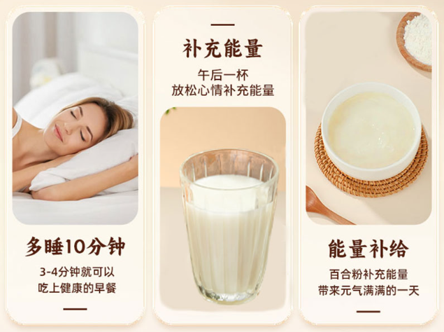 这款兰州百合精粹粉选用的甜百合,坚守9年的生长周期,三年生,三年养,三年长,历经3000多天的等待才得以产出,积累了丰富的百合甙、钾元素、锌元素、核黄素等营养。