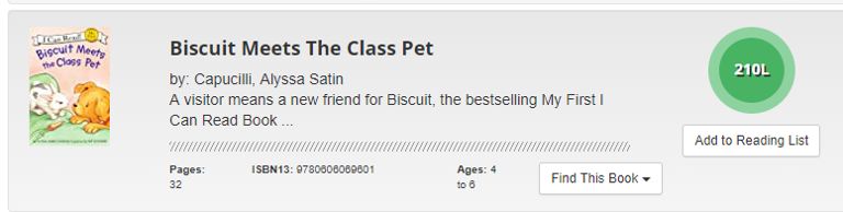 结果告诉我,"Biscuit Meets the Class Pet"的蓝思值在100L-200L之间。