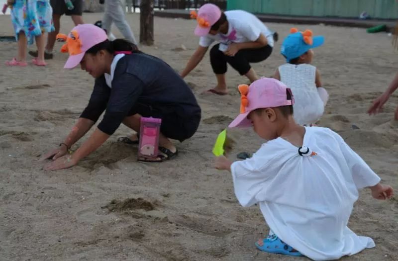 在温柔细软的柔沙间跟孩子一起嬉戏。