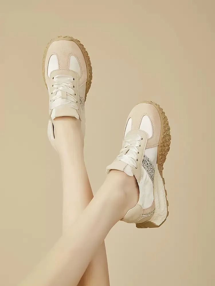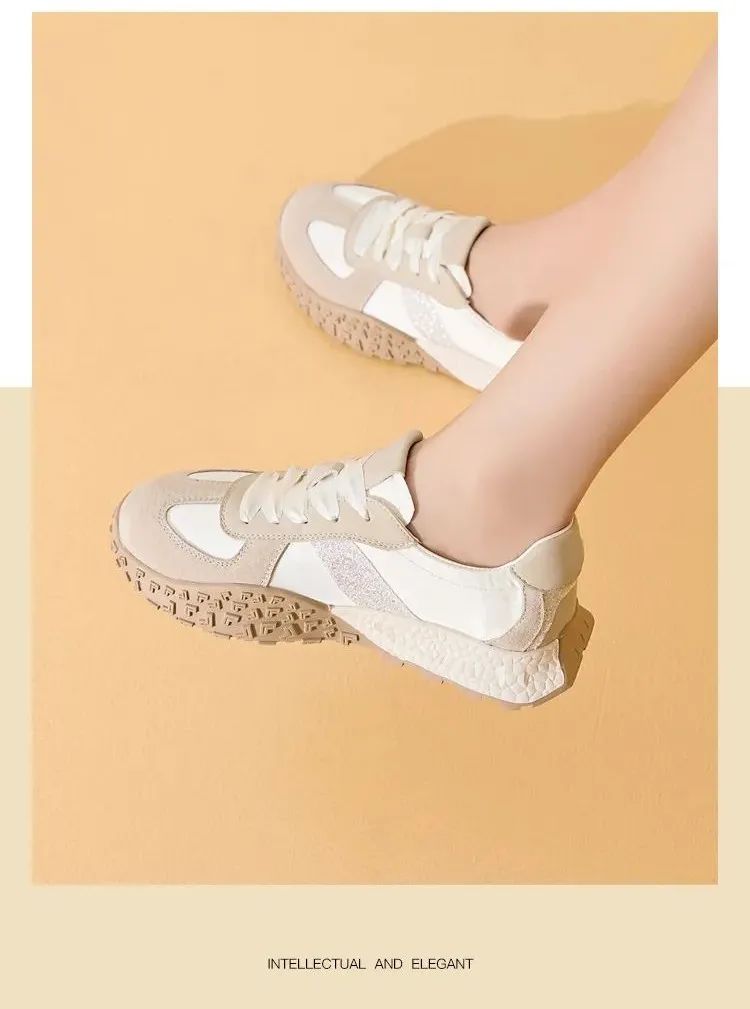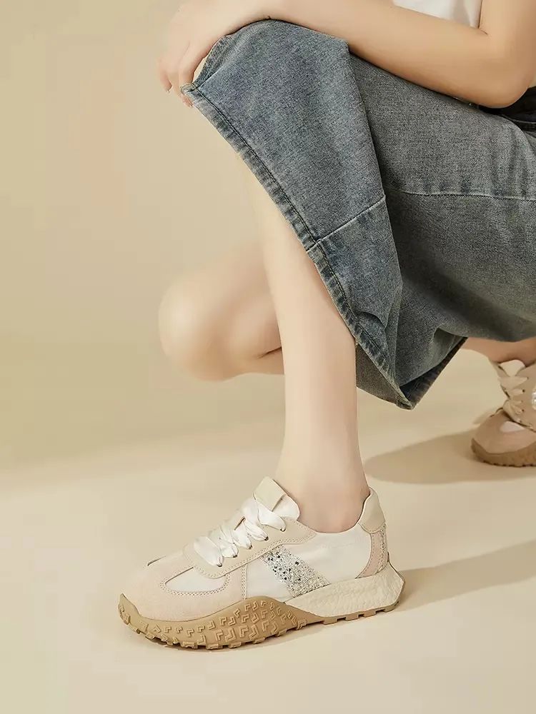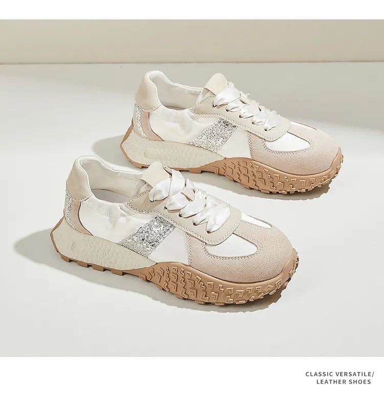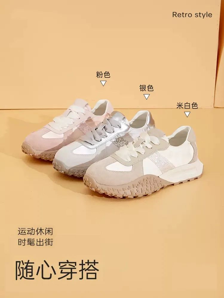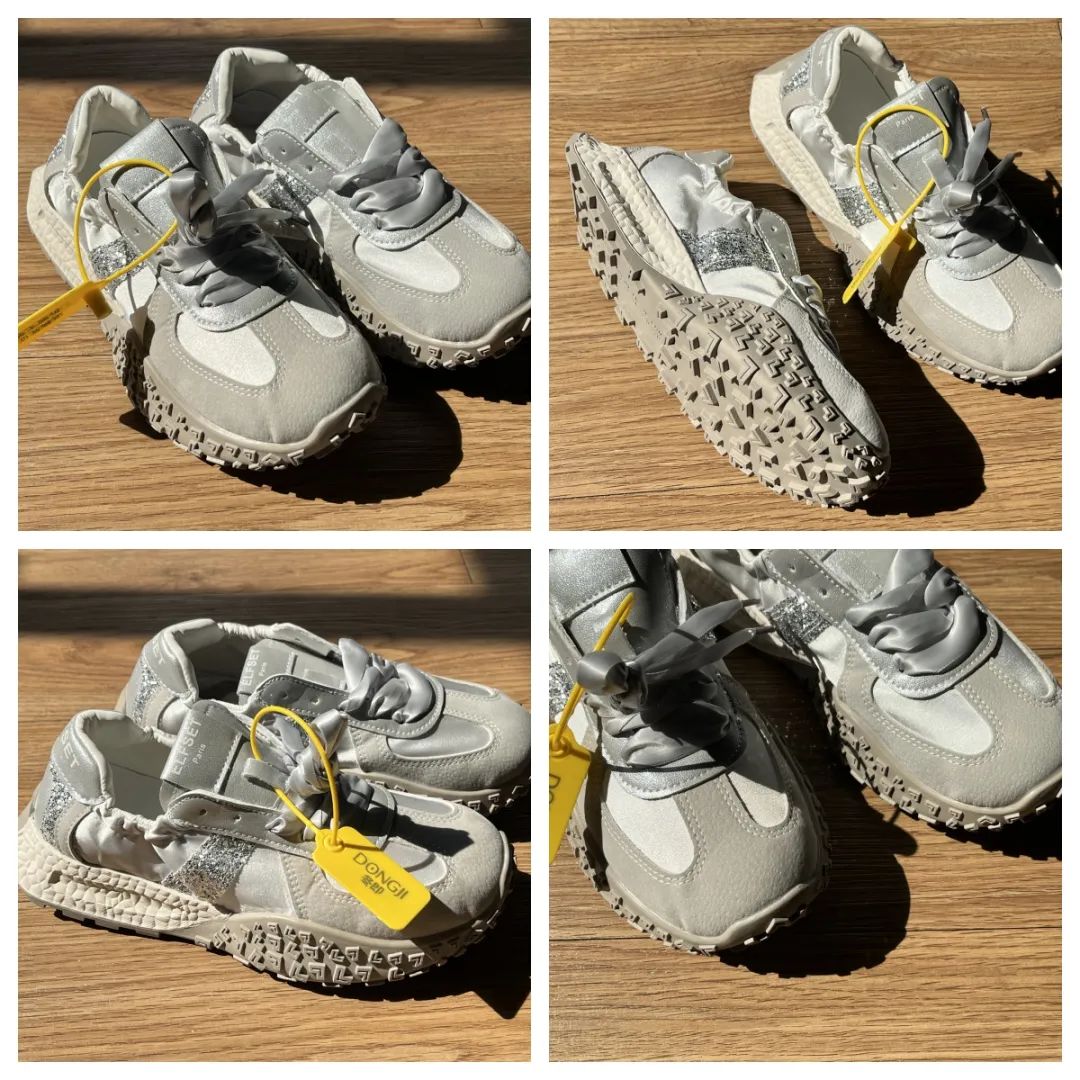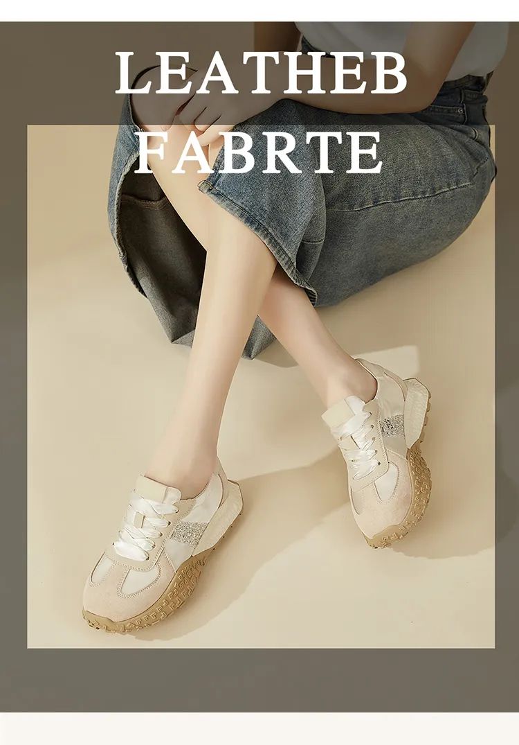 1.超纤+布面拼接鞋面,搭配绸缎芭蕾鞋带,气质高级;