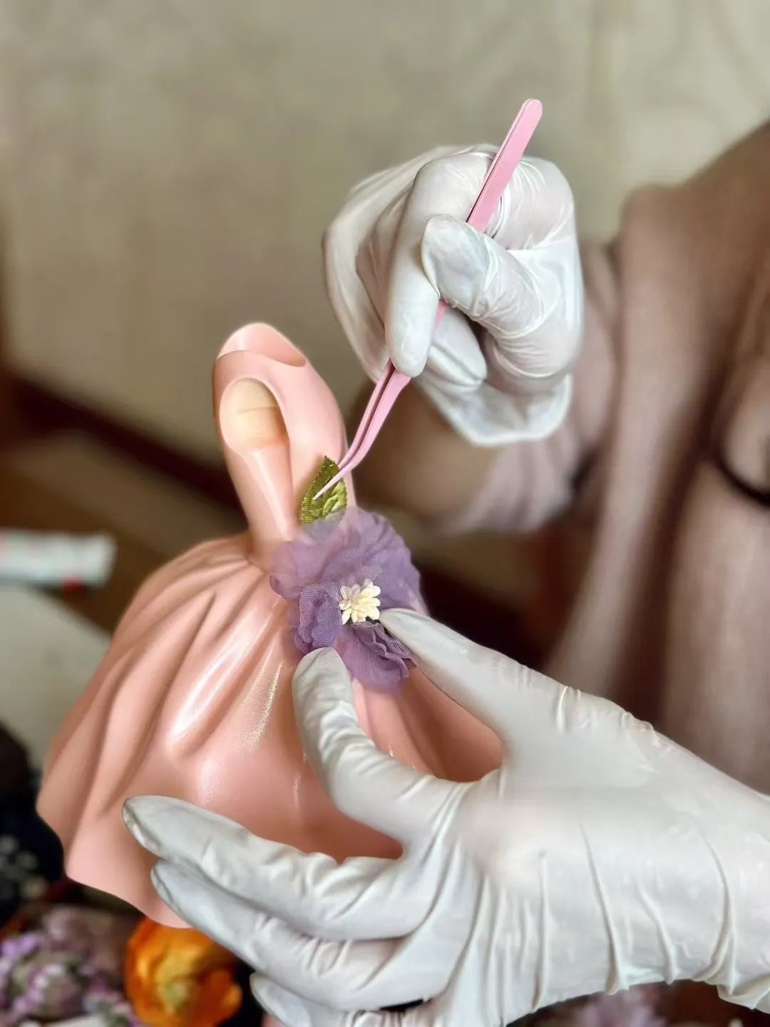 然女孩给我的印象是自然的,自由的,自在的,是全然地做自己之后再生长出属于自己五彩缤纷的颜色。在拿到然女孩素胚之后我花了很长时间去思考它的的名字,只有当我赋予她名字之后,她才会有灵魂存在。芳华不止是一个名词、一个形容词,她是每个女性身上都存在的一种向阳而生的状态,无关乎年龄,外貌,是在生活面前、人生面前如何面对的态度。人生的尽头是我们都知晓的,如何过活这短短数十载,将有限的如烟花般的岁月,绽放属于自己的那一抹绚烂,我想这个可能就是“芳华”。