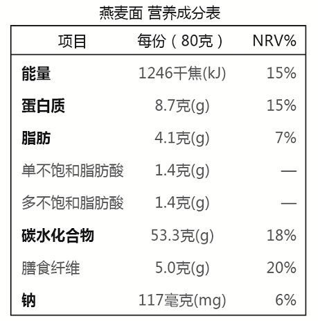 1.内配的燕麦面非油炸,0防腐剂、0添加剂,富含膳食纤维,无小麦粉添加,低GI。
