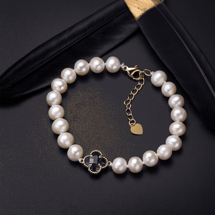 为了保证珍珠间距均匀,不易产生磨损,手链都是手工打结。电镀18K金镶边和卡扣是点睛之笔,温润典雅,大气而不张扬。
