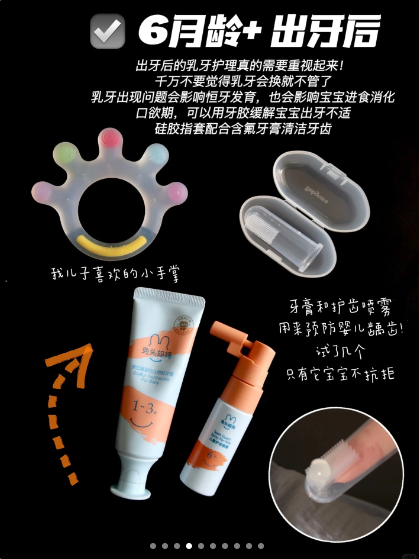 我家宝宝从出牙到1岁各阶段的口腔护理方式。