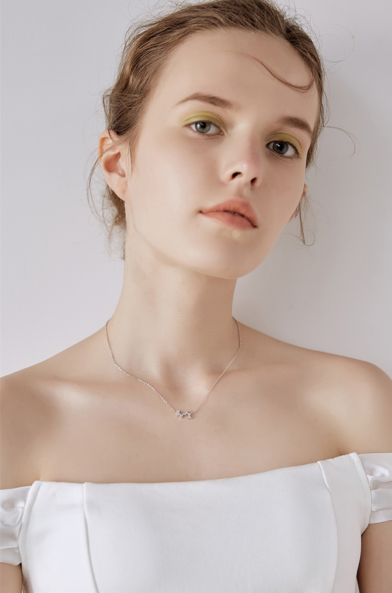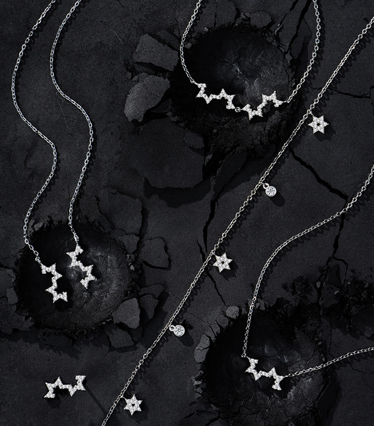 错开的五角星设计,加上群镶的碎钻如同星辰一般,附着在星轨之上,形成璀璨闪耀的星变项链!无论何时何地,它都是闪耀女孩必备的宝藏秘密!