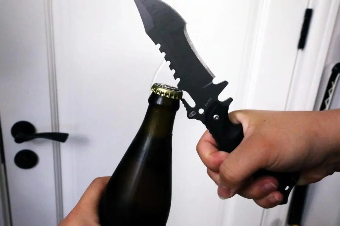 户外探险,总是要停下来休息,汉道三叉戟还配置了开瓶器,来瓶啤酒,放松一下。