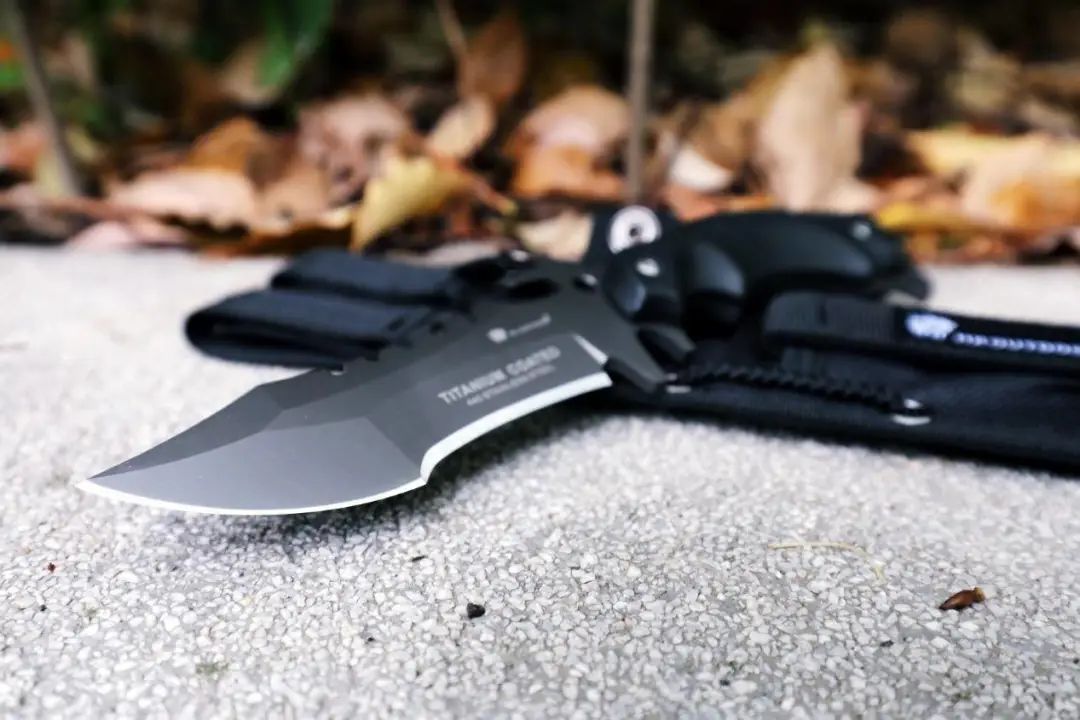 汉道三叉戟刀体内部采用440不锈钢,强度更高,表面进行了镀钛工艺处理,能够增加韧性,更加保护刀刃。同时也使得刀具整体显得更加的冷酷、沉稳。