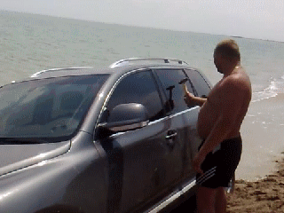 在水下尽管车外压力大,也可以轻松破窗。