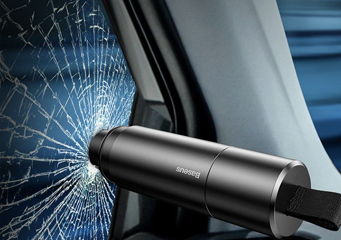 被锁在车上或者遭遇事故时,使用安全锤击车窗四角或者边缘,很快就可砸碎玻璃逃离。