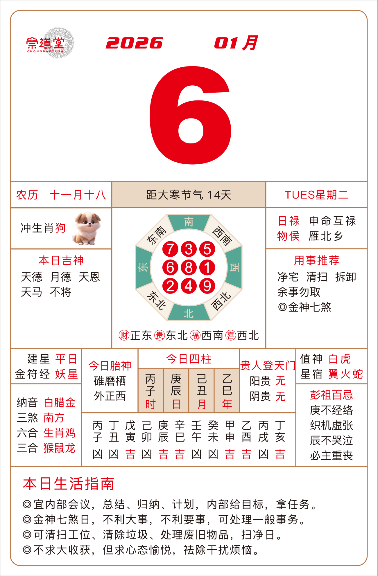 2026年1月16日 农历十一月廿八 庚寅日 冲猴