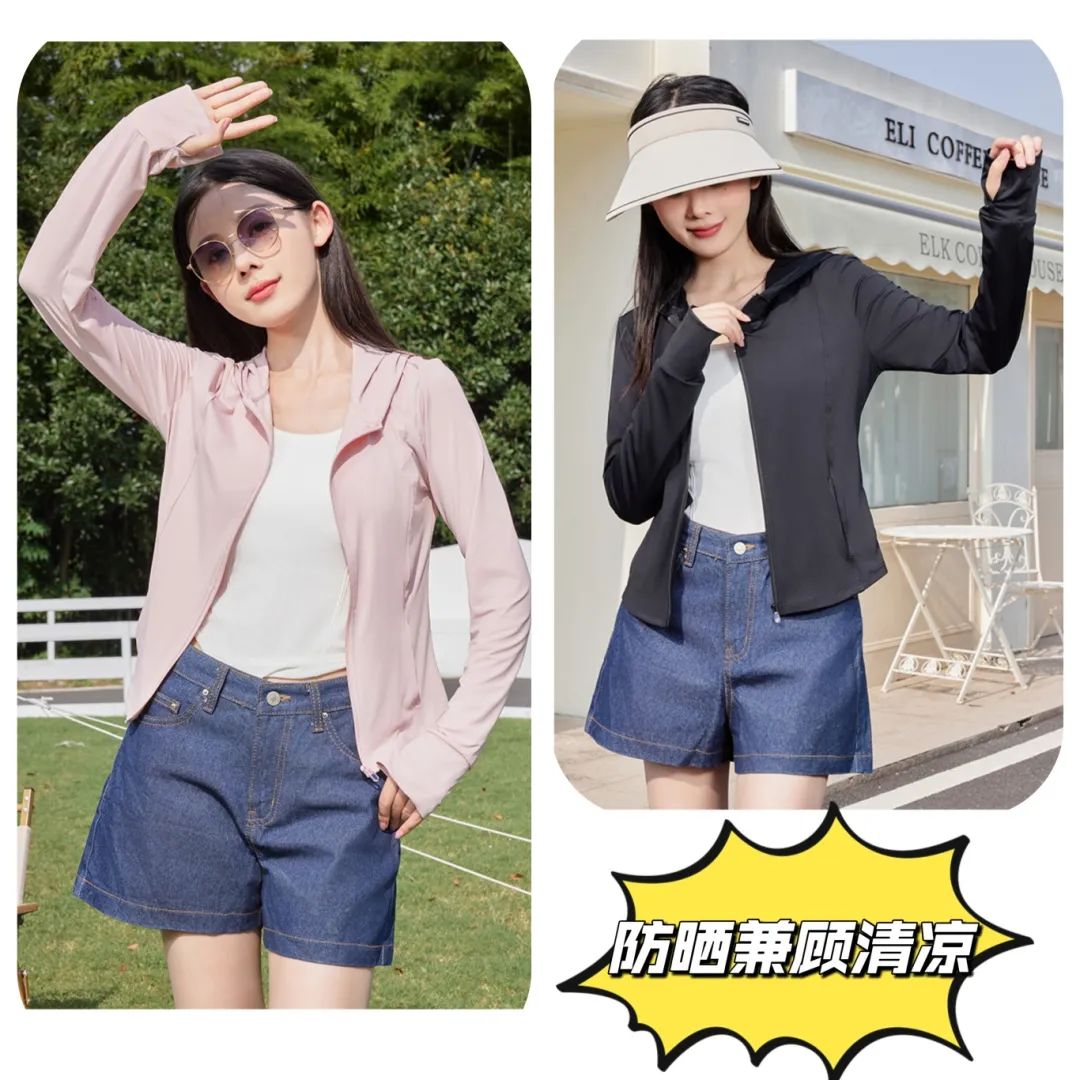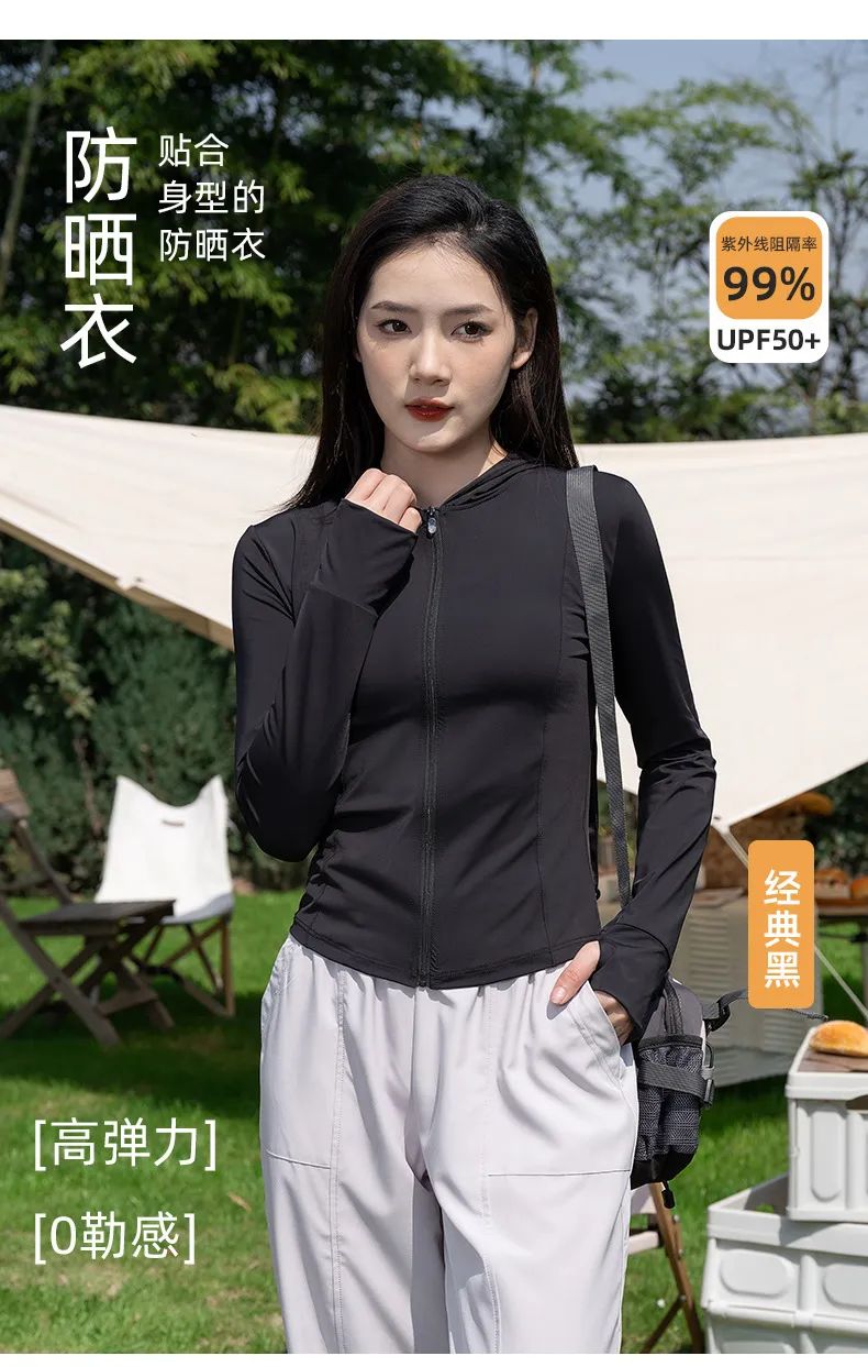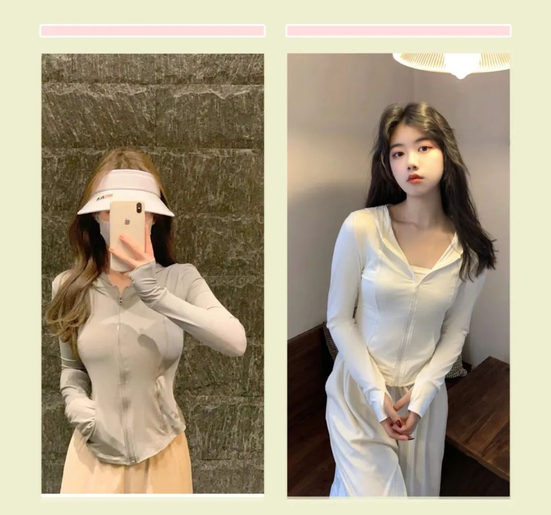 修身瑜伽防晒衣可搭配小短裙或者阔腿裤,活力满满又性感,没想到防晒衣也能这么好看!