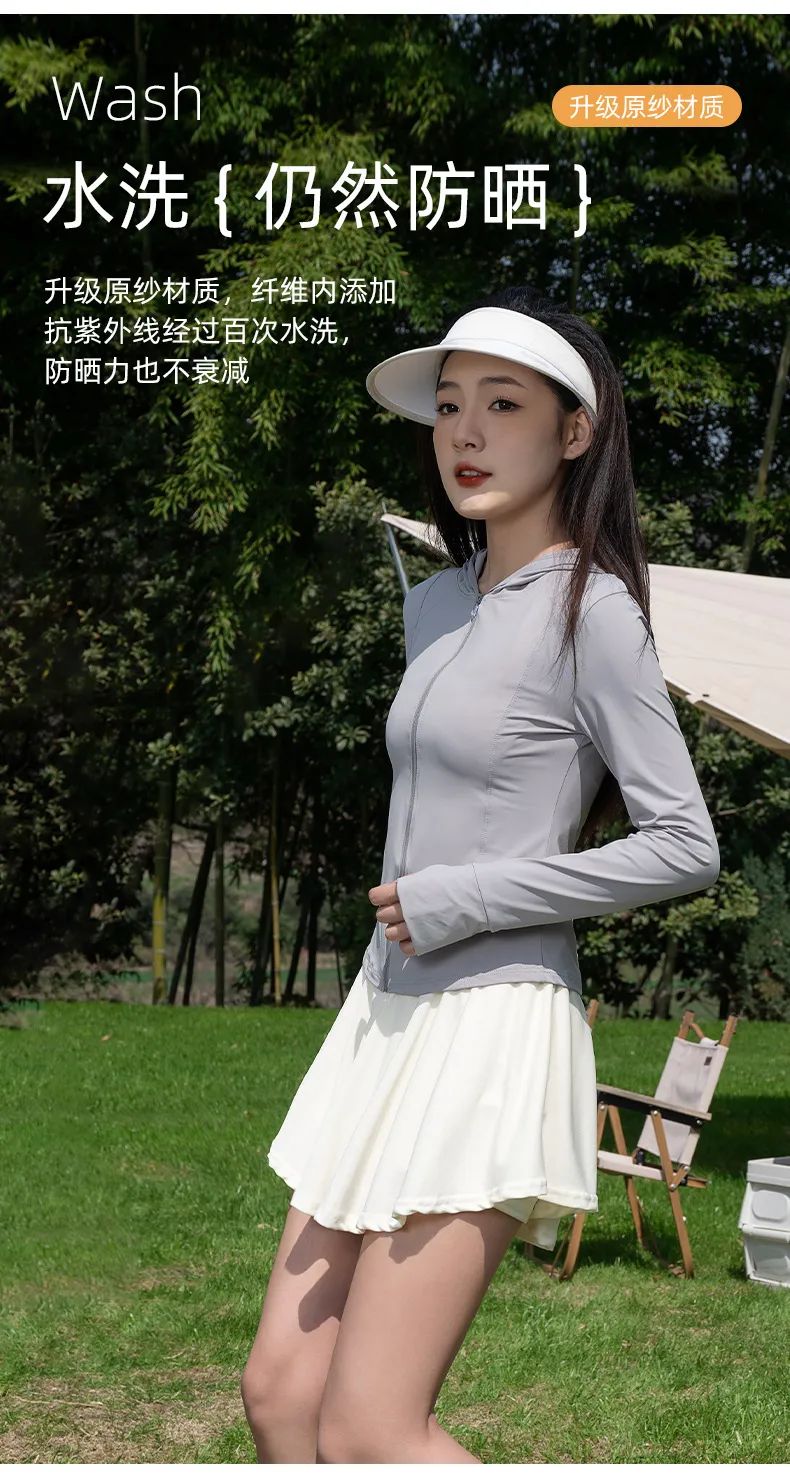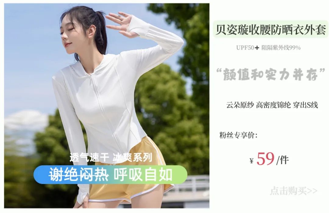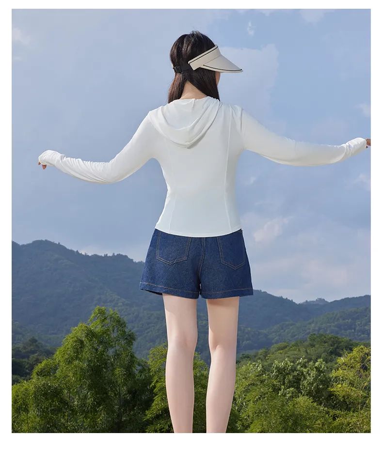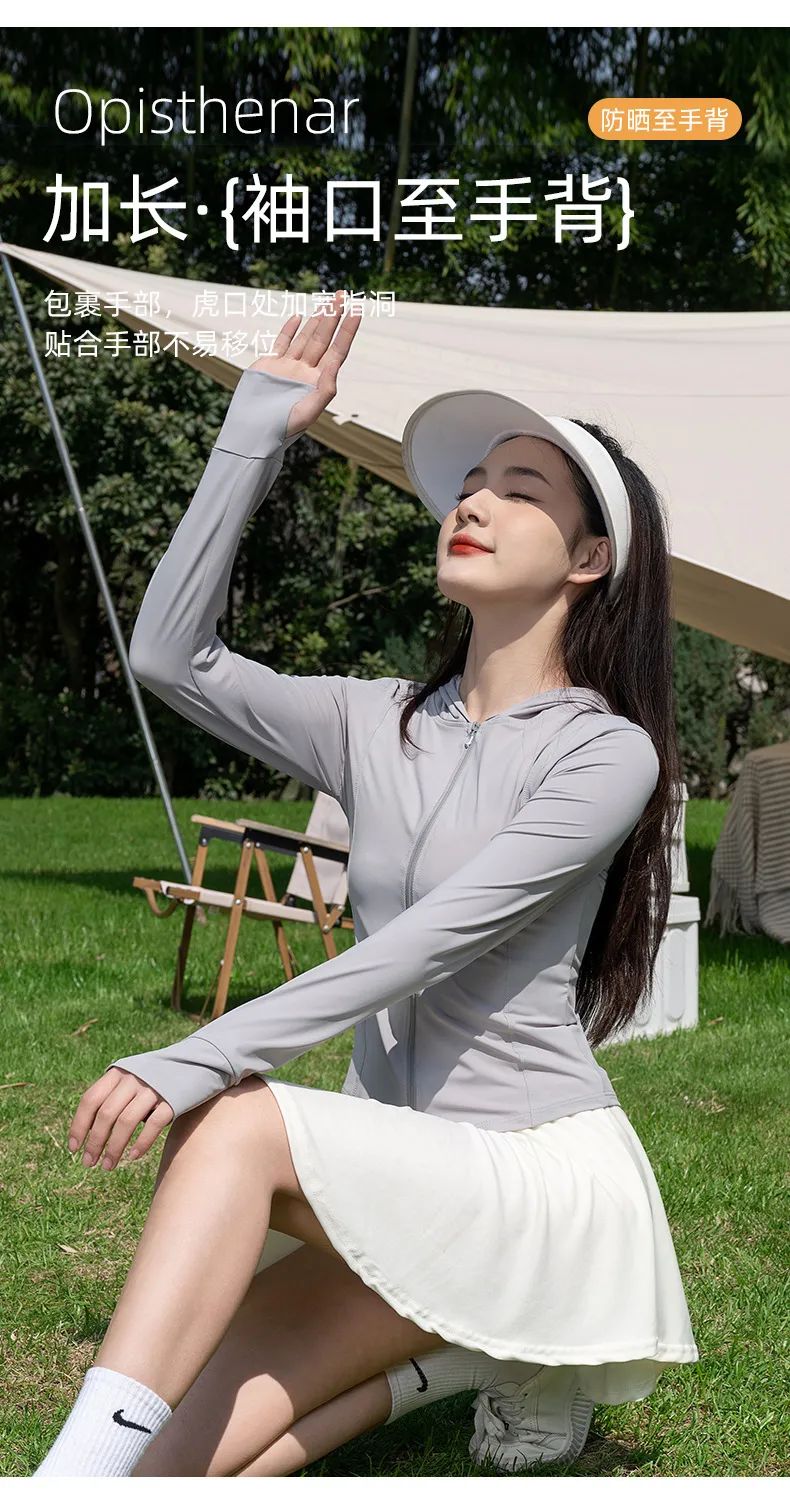 修身瑜伽防晒衣可搭配小短裙或者阔腿裤,活力满满又性感,没想到防晒衣也能这么好看!