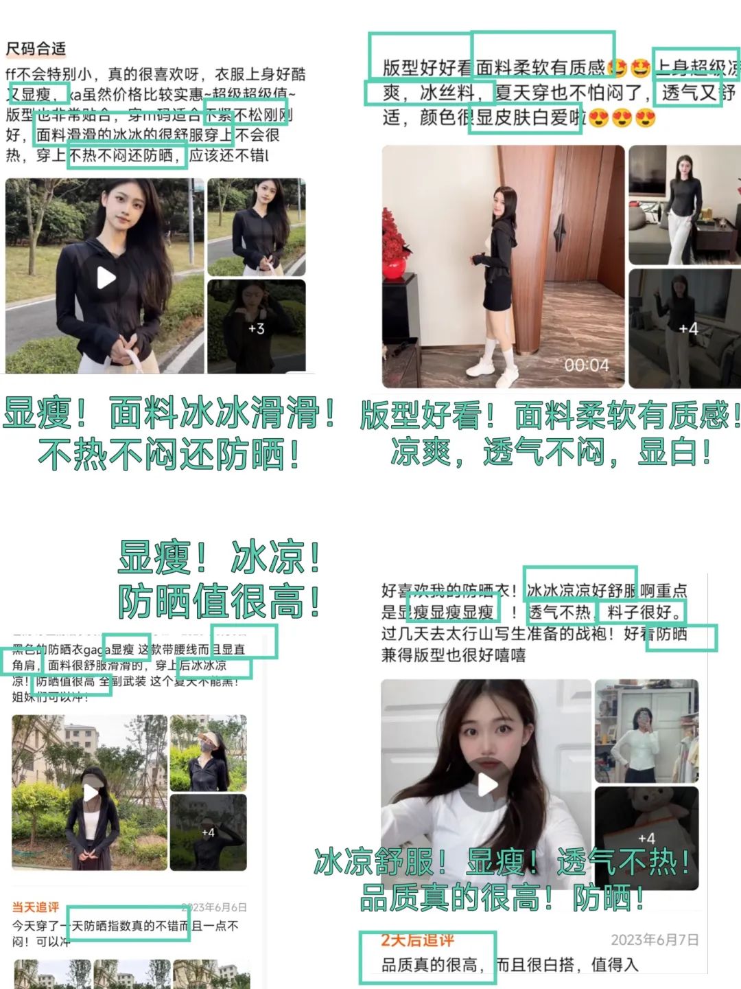 是不是好神奇!!我们团队又进行调查后发现,因为避免多穿一件防晒衣带来的体感闷热,他们家防晒衣用的是科技冰凉纤维,这个布料触感清凉,柔软垂顺~