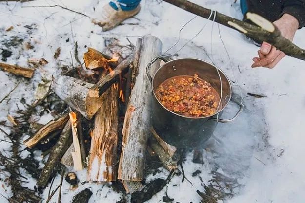 记住,喝冷水或吃雪会让你的身体损耗掉大量热量,而热量正是你的身体生存所急需的。在冬季野外,一定要在喝之前把水加热,如果没有携带气炉,但有金属杯子,那么你可以在明火上安全地加热它。