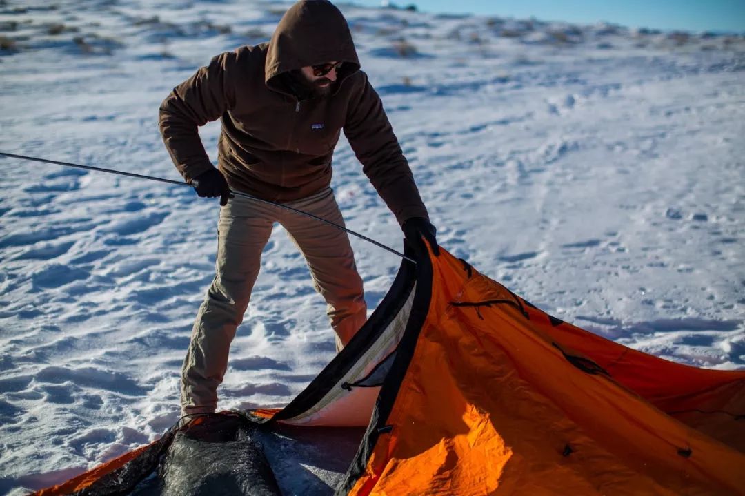 如果携带着露营装备,那就为自己降低了不少风险,天黑前,在避风处扎起帐篷。利用起背包中一切可以保暖的装备,记住一定要做好自己与冰冷地面的隔离。
