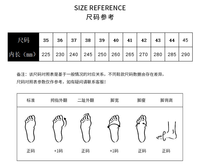 *35-36码为正常尺码,37码开始会偏大一点(男女码均衡的原因),大家选购时注意看下脚长哦。