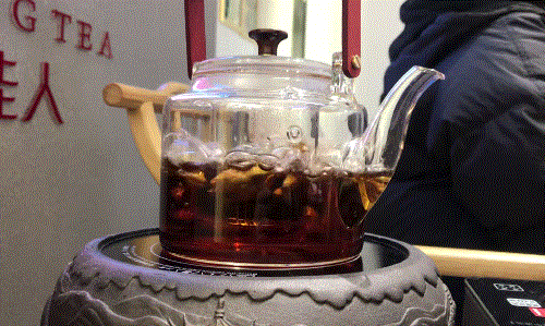到第三壶时,改变煮茶的时间。时间增加五分钟,茶汤初沸后,继续再煮五分钟。