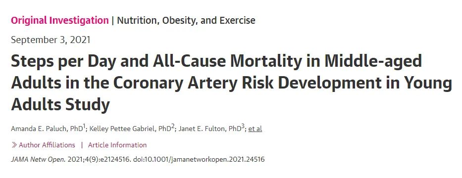 2021年9月,一项发表在美国医学会杂志旗下《JAMA Network Open》上的最新研究发现,在中年时期每天走7000步可以保持动脉健康,并将死亡风险降低70%。