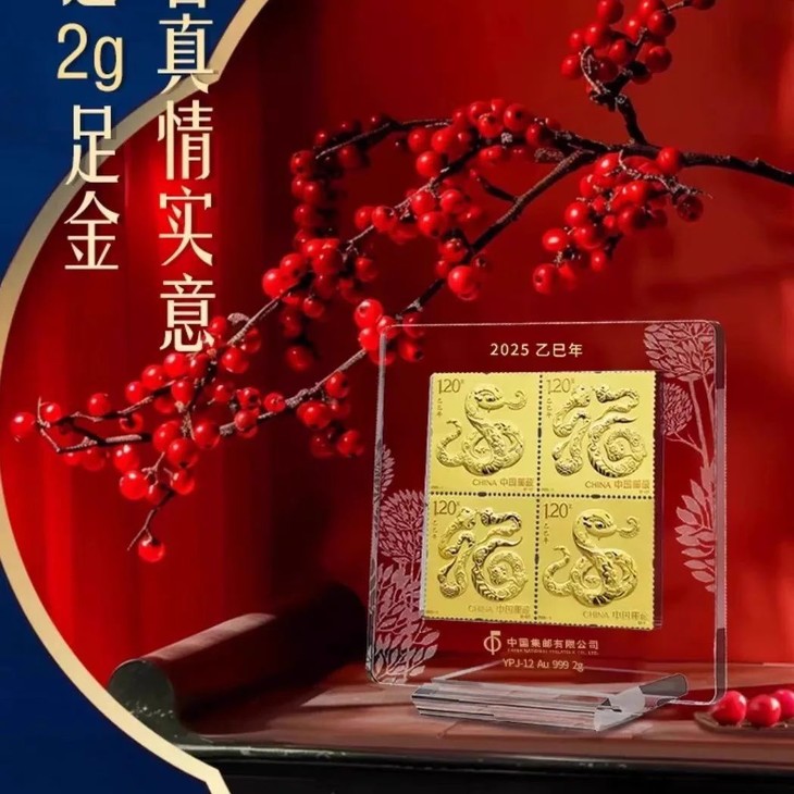 邮票金背面利用特殊工艺将贵金属与防伪特种纸结合,带有荧光防伪,具有独特的防伪功能和收藏价值。