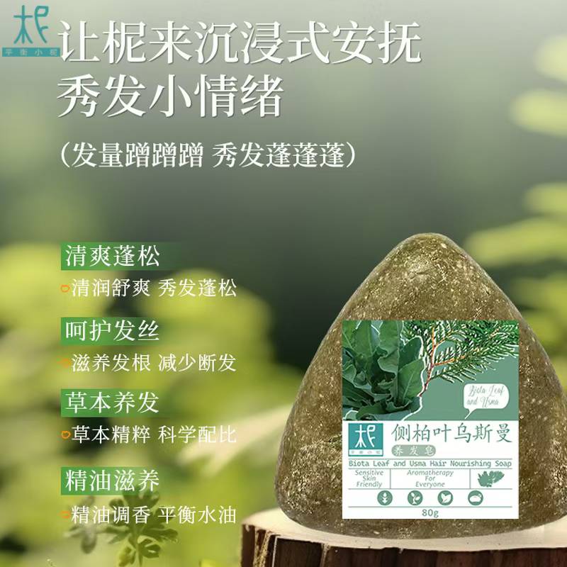 平衡小柅侧柏叶乌斯曼精油冷制皂,用草本植萃的力量,帮你找回健康强韧的秀发~