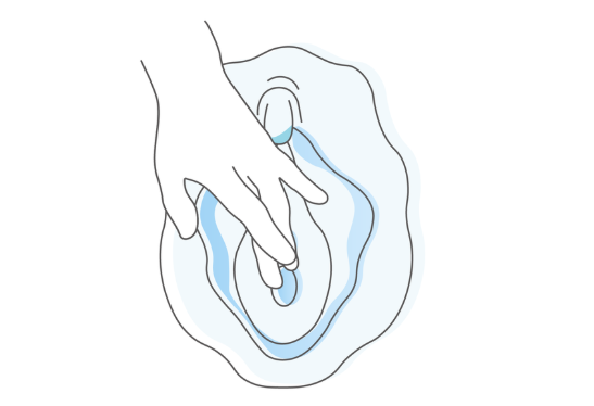 ③ 感受到豆豆勃起后,再向下滑动到yin道口的位置,重复动作;