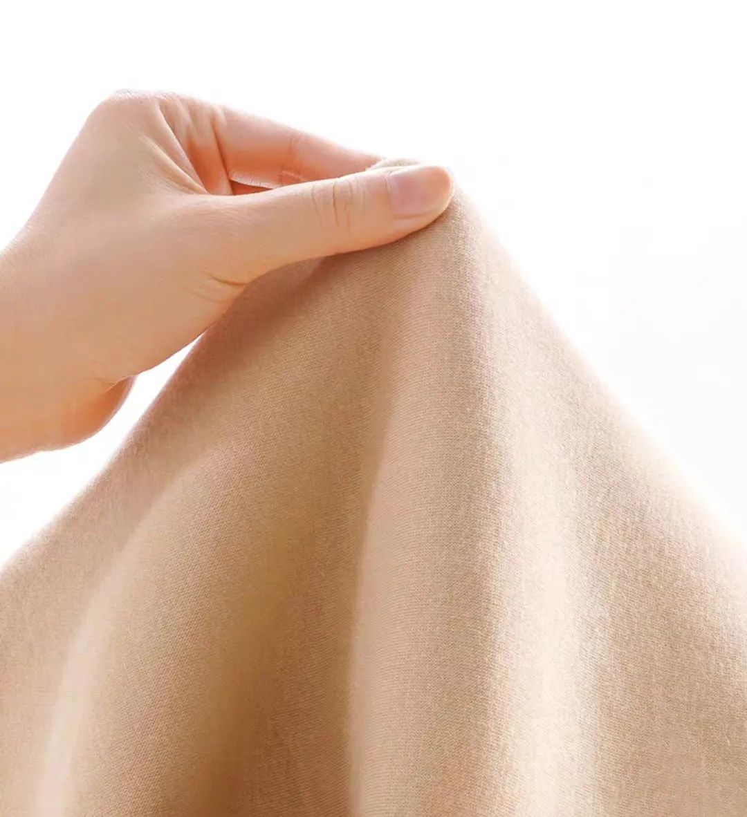 磨毛面料柔软蓬松,手感如羊绒般细腻柔软,保暖性能可与羊毛媲美。超细纤维更高密度,能有效防止热量散失。