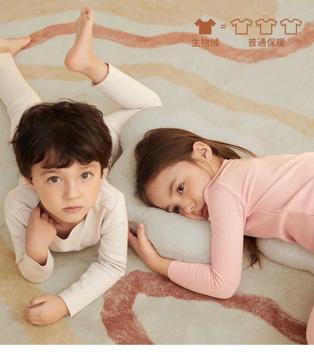 与普通厚实的纯棉保暖衣不同,生物绒面料虽然保暖,但同时还保持了轻薄透气的特性,孩子穿上没有任何负担,不影响孩子的各种活动,手脚伸展自如不难受。即便出了汗也能够很快排出,避免因为捂汗而着凉。