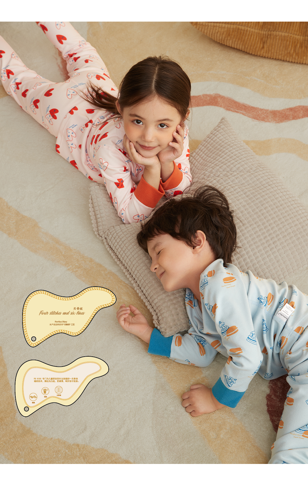 全身采用四针六线无骨缝制工艺,减少了缝线与肌肤的摩擦,给孩子尽可能多的舒适。