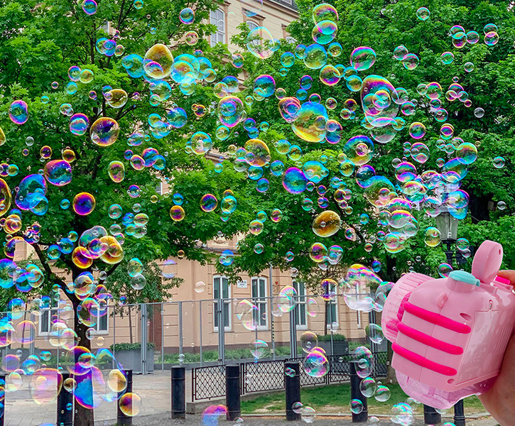 这款泡泡机被各大网红推荐,一度卖断货,不仅深受小孩子们的喜爱,就连大朋友们还特地买回家自己玩,给大家欣赏一下美照。