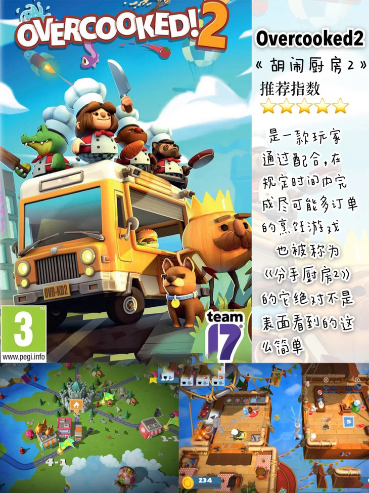 恩爱情侣为何拳脚相向?玩过胡闹厨房2的小伙伴一定深有体会😝作为一款合作烹饪游戏,玩家只需要在规定时间内按照提示成功完成尽可能多的订单即可,但这将会是一个最让你抓狂的厨房🍳反正我和男友是手忙脚乱、骂骂咧咧的通关这个游戏的🤬作为续集,关卡和食谱都比第一部丰富很多,新增的投掷功能非常🉑️ 强推👍🏻